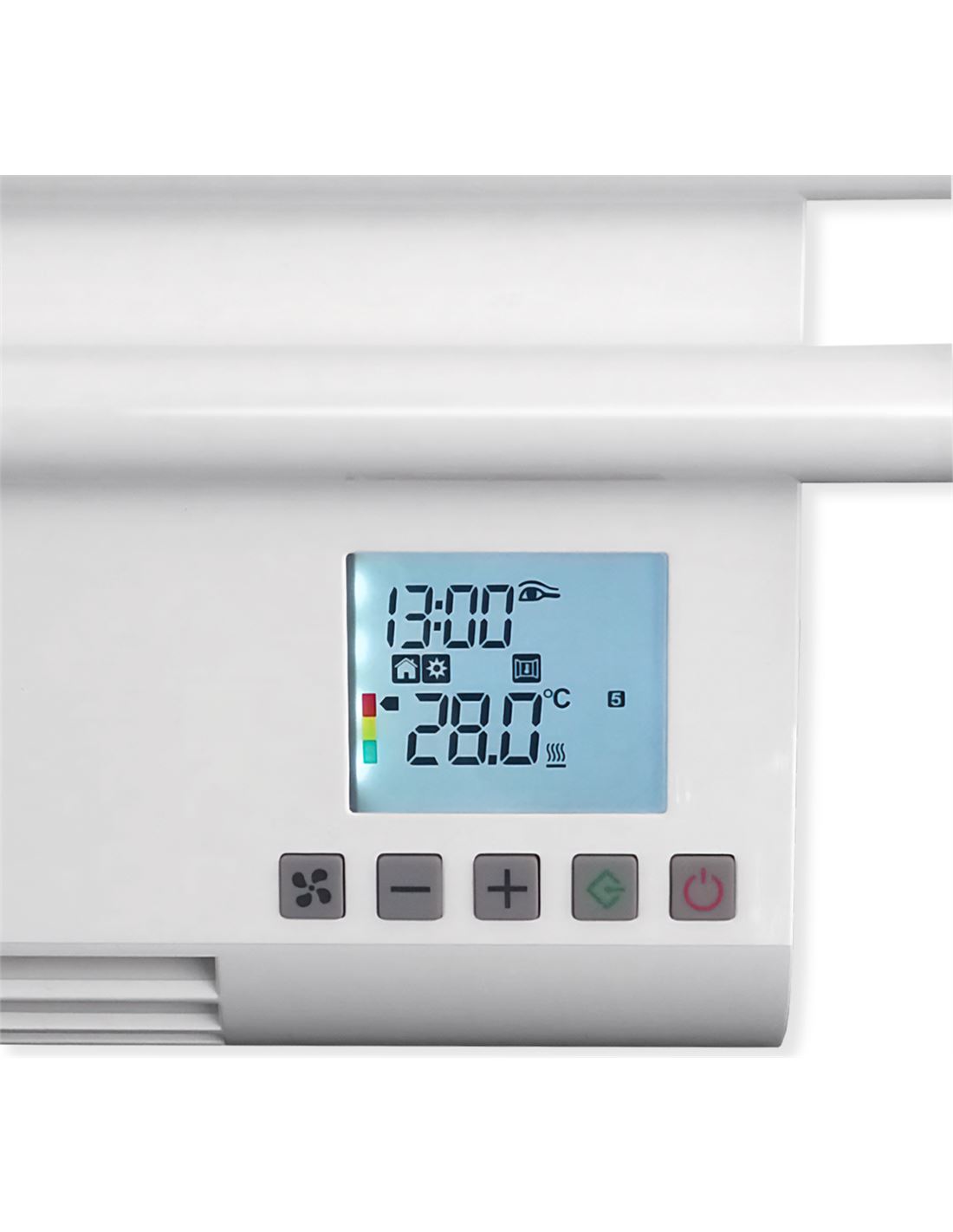 - Programación independiente: Controla el secatoallas y el termoventilador por separado con opciones de programación diaria y semanal.