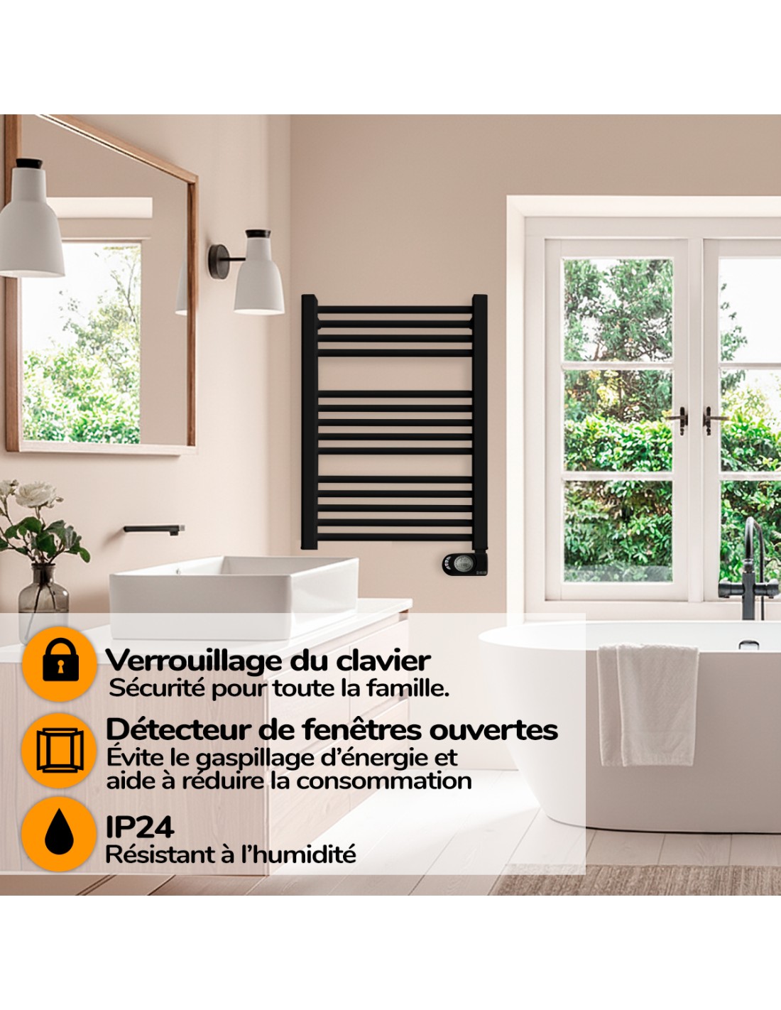 Sèche-serviettes électrique à inertie sèche HJM, 750 W, Noor, Noir