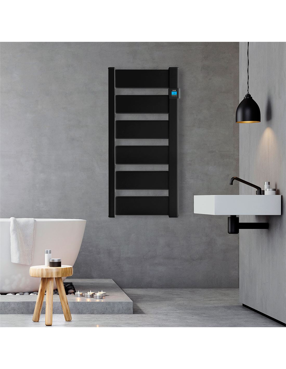 El secatoallas eléctrico VERA combina eficiencia y diseño moderno con lamas para una mayor superficie de calentamiento. Con 750W de potencia y un termostato digital programable 24/7, te ofrece control total del consumo energético, adaptándose a tus necesidades, evitando un gasto innecesario de energía.